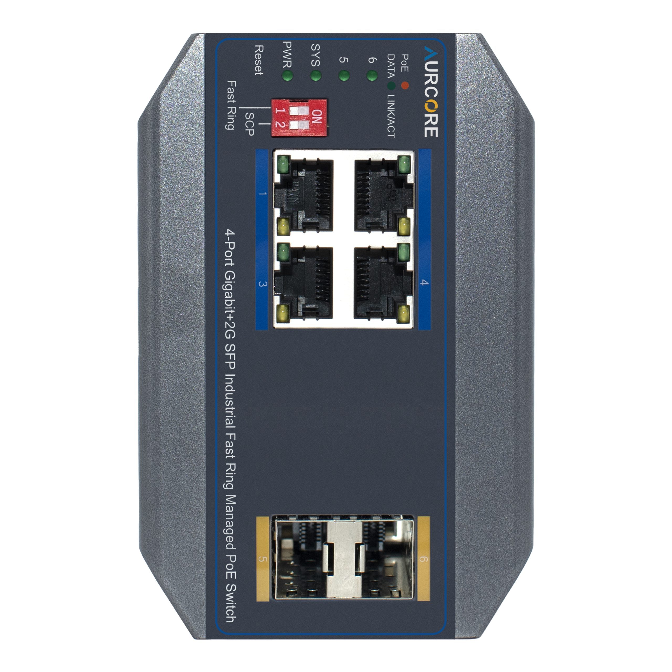 - The AIS2001P is a compact, industrial-grade Layer 2+ managed switch featuring 4×10/100/1000Mbps PoE+ RJ45 ports and 2×1Gbps SFP slots for flexible uplink connectivity. Each RJ45 port supports up to 30W of power output, simplifying wiring and reducing deployment costs in applications such as surveillance and wireless access. Designed for harsh environments, it operates reliably in extreme temperatures from -40°C to 75°C and adopts a fanless, all-aluminum enclosure for efficient heat dissipation and corrosion resistance. The switch supports static routing, VLAN, QoS, and ring protection protocols such as STP, RSTP, MSTP, and ERPS, ensuring resilient network performance and fast recovery in industrial scenarios. Additional features include dual power input support, lightning and ESD protection, and multiple management options via Console, Telnet, SSH, and Web interfaces—making it ideal for industrial automation, transportation, and outdoor deployments.
