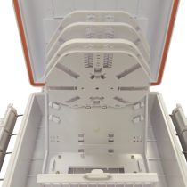 Fiber optic terminal box suitable for optical fiber splicing, distribution and protection. It is practical design for fiber arrangement, and for outdoor wall mounted and pole mounted application.